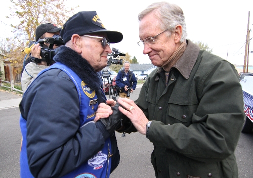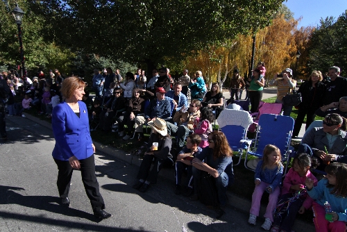 Meanwhile, her opponent, U.S. Sen. Harry Reid, D-Nev., greeted spectators and participants before the parade began, and then watched from a seat along the parade route. His aides said Reid was advised not to walk or ride a car in the parade because of security concerns.