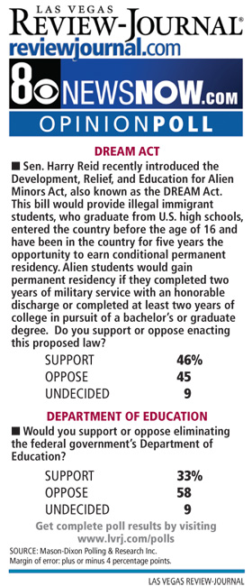 Overall, however, Nevada voters are divided with 46 percent supporting the DREAM Act, 45 percent opposed and 9 percent undecided.