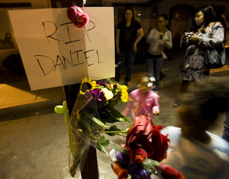 On Monday evening, flowers and letters were taped to an awning near the site where Fuller was gunned down.