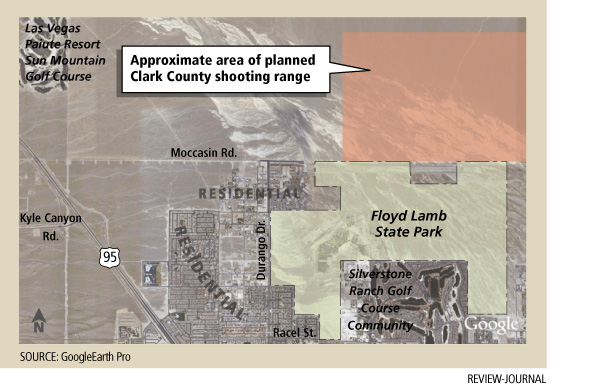 Floyd Lamb State Park’s firing range is 1,100 feet from homes — about a fifth of the distance that the new shooting park will be from the neighborhood — and the county has received no complaints, Turner said.