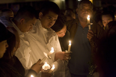 Hundreds of former patients, friends and family gathered in front of Makabenta's clinic Wednesday evening for a candlelight vigil.