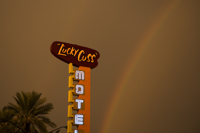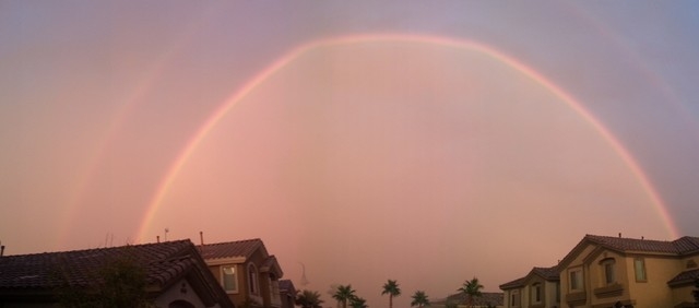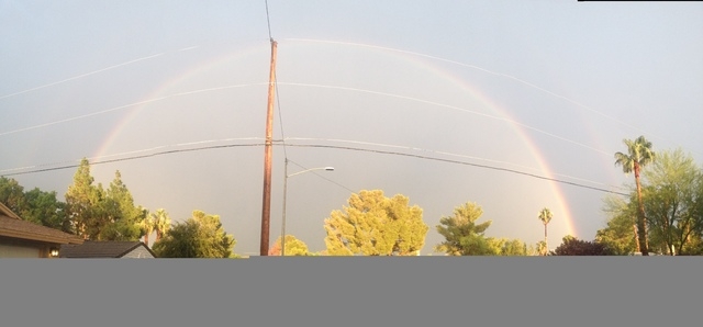 A rainbow taken on Las Vegas Boulevard near Odgen Avenue on Monday, Sept. 9, 2013. A thunderstorm pelleted the valley with high winds and rain. Nevada Energy reported that wind knock out power to 2,000 costumers.