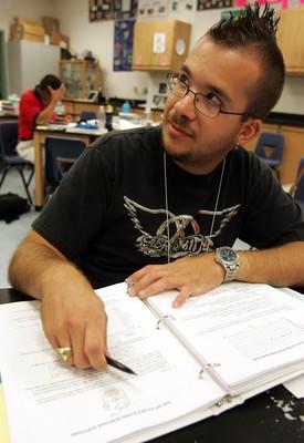Sporting a mohawk and an Aerosmith T-shirt, Josh Locklear didn't stray from his physics book and worksheets that lay on a desk at Del Sol High School on Thursday.
