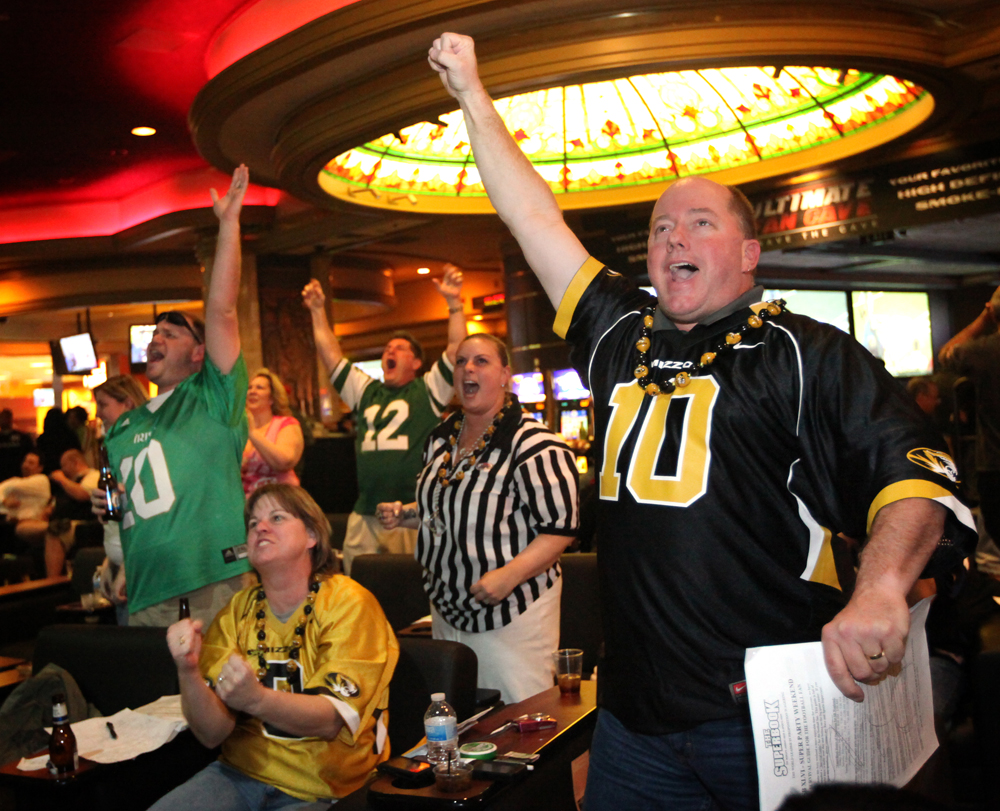 Fans and sports bettors gathered at the LVH (formerly the Hilton) to watch the New England Patriots and the New York Giants battle in the Super Bowl on Sunday, Feb. 5, 2012. The Giants beat the Patriots 21-17.