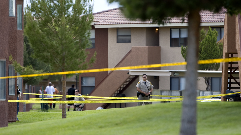 A Las Vegas police officer shot a suspect in the northeast valley who has been hospitalized in critical condition, police officials said.Officer Barbara Morgan with the Metropolitan Police Department said the shooting this afternoon occurred near the Heritage Estates Apartments, 4870 Nellis Oasis Lane, near Cheyenne Avenue and Nellis Boulevard.