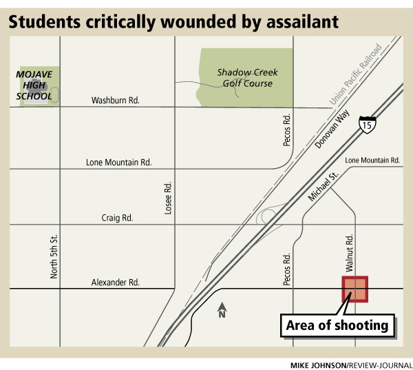 Taken to UMC with gunshot wounds were a teenage girl, three teenage boys and two young men. At least four of the victims were Mojave students.