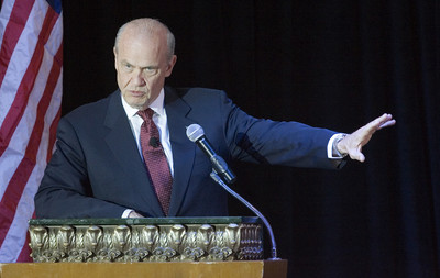 In selecting a president, he said, Americans should consider this scenario: "When our worst enemy sits down at the negotiating table and looks across the table and is trying to decide about the United States of America, how much can they get away with? How much of what they're hearing is really true, or is it just bluster? Does the guy mean what he says on the other side of the table? The question is who do we want on the other side of that table. That's the fundamental question."