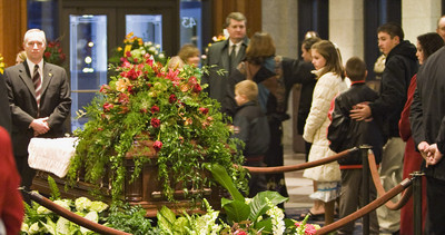 Hinckley's eldest son, Richard, who runs the church missionary department, greeted people outside the hall, expressing gratitude for their prayers and condolences.