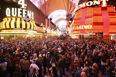 There was a big ole party Wednesday in Las Vegas. Official estimates say 291,000 people showed up for New Year's Eve festivities, halfway between last year's number and the year before. A record 30,000 were at downtown's Fremont Street Experience.