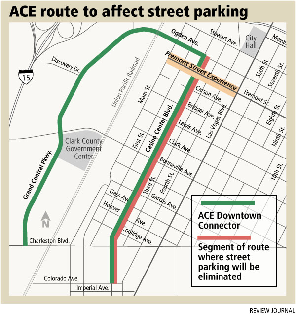 On Thursday, the Las Vegas Traffic and Parking Commission recommended removing on-street parking on Third Street from Imperial Avenue to Charleston Boulevard, and on Casino Center from Charleston to Ogden Avenue.