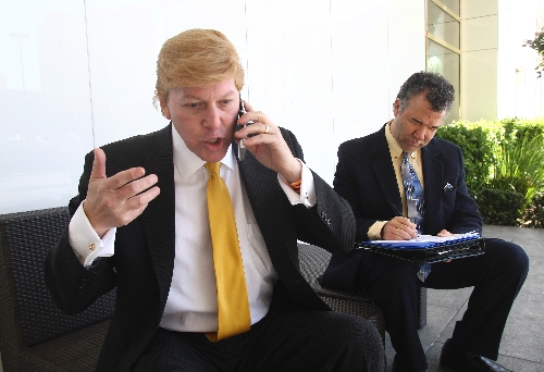"I'm here because I wanted to get on TV and in the newspapers," he said. He was booked 2½ weeks ago at the Trump tower here as Trump for a small Pennsylvania pharmaceutical company.
