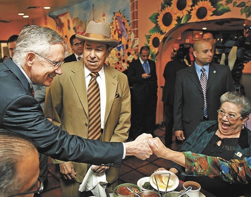 Inside the Doña Maria Tamales Mexican Restaurant in downtown Las Vegas, Vicenta Montoya on Wednesday outlined plans to get Hispanics to the polls for U.S. Sen. Harry Reid, the endangered Democratic incumbent.