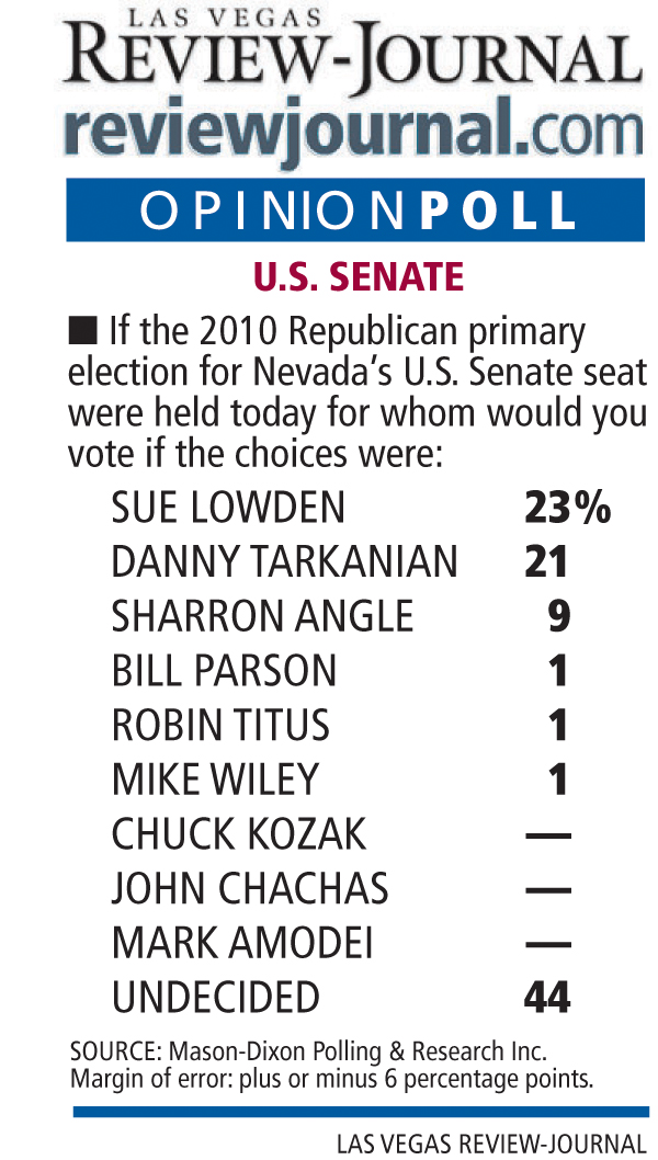 The poll by Washington, D.C.-based Mason-Dixon Polling & Research Inc. shows 23 percent of Republicans favored Lowden to 21 percent for Tarkanian with 44 percent undecided.