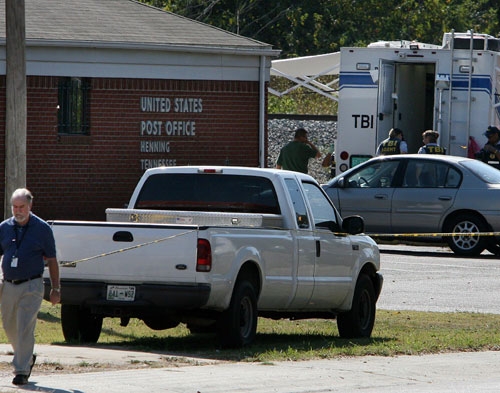 HENNING, Tenn. -- Two gunmen opened fire Monday at a post office in a rural West Tennessee town that was home to "Roots" author Alex Haley, killing two workers during what a survivor and authorities described as an attempted robbery. The shooting happened Monday morning at the post office in Henning. Officers were searching for two men, and no arrests have been made. District Attorney Mike Dunavant said the case involved "disturbing violence" but did not elaborate.