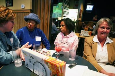 The alumni greeted each other with consoling hugs or firm handshakes as they came together in a side room at the restaurant. Many of them wore maroon shirts bearing "VT" insignias.