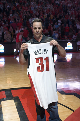 The future first-ballot Hall of Famer was honored at halftime of the Rebels' 68-66 overtime loss to San Diego State. After a highlight reel was shown on the large scoreboard that hovers over midcourt, Maddux was presented with a white UNLV basketball jersey with his familiar No. 31 and last name across the back.