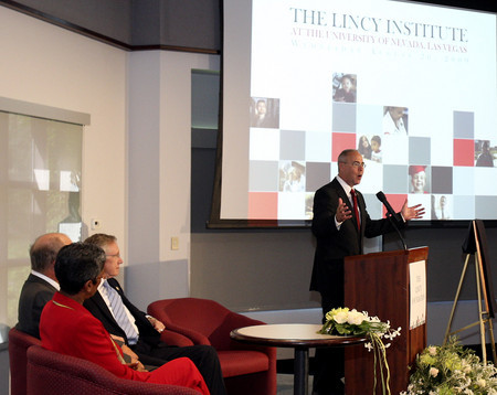"Today is one of those game-changing days for the university," UNLV President Neal Smatresk told a crowd of community leaders and dignitaries.