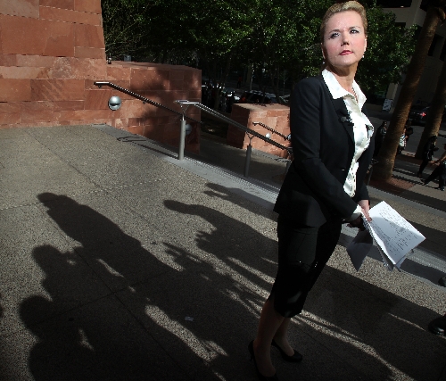 "I'm implicated in all of this at the end of the day, but I'm going to come back and fight back strong because I am tired. You know, enough is enough," the former Henderson city councilwoman said outside the Regional Justice Center.