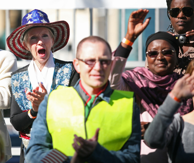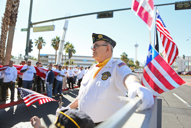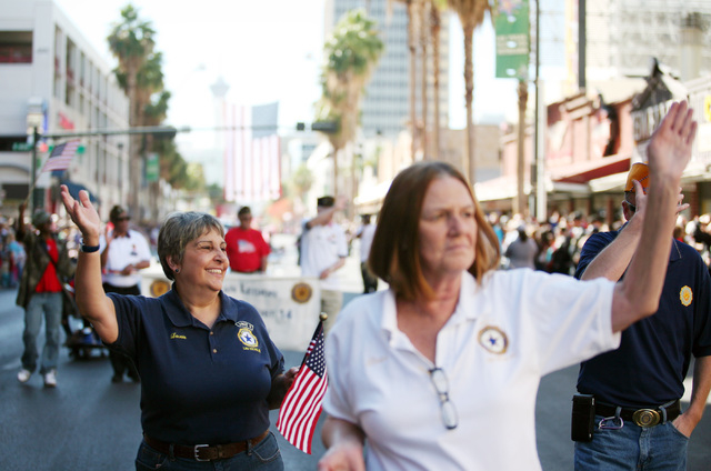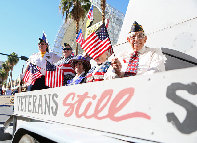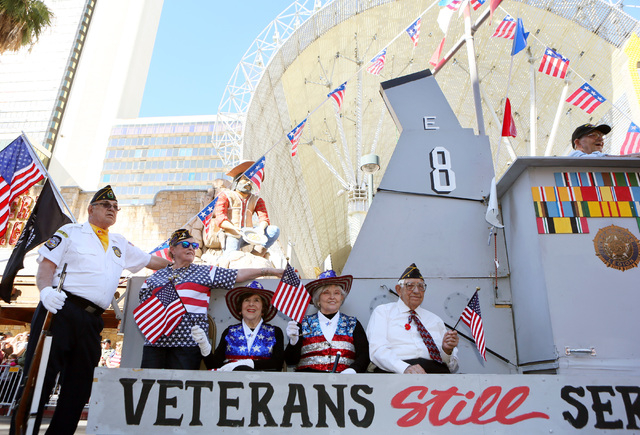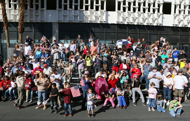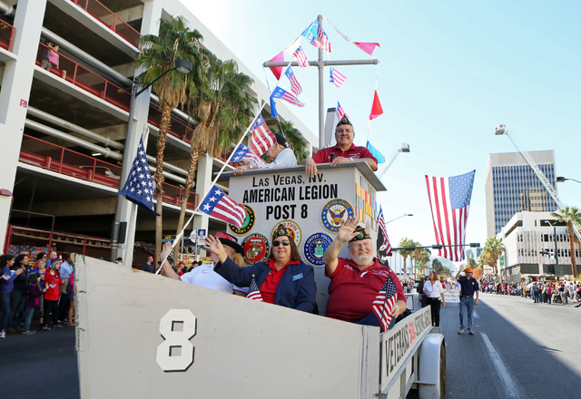 As the American Legion Post 8 battleship float rolled down Fourth Street Monday near the front of the annual Las Vegas Veterans Day parade, the two words spoken most often by thousands of flag-waving spectators were “thank you.”