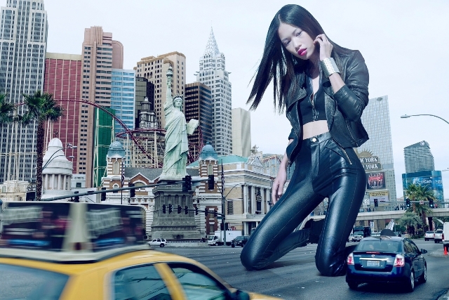 Later, she was Photoshopped into the scenes along the famed Strip by George’s studio partner, Francis Baytan.