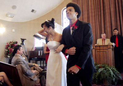 The happy "couple" consisted of Alejandra Toledo and Mitchell Deas, two students in the Academy for Hospitality and Tourism at Valley High School, near Eastern Avenue and Vegas Valley Drive. Their mock nuptials, complete with fake back story, were the culmination of a semester project on event planning, a first for the program and a rich educational experience for students hoping to make a career in Las Vegas' tourism marketplace.