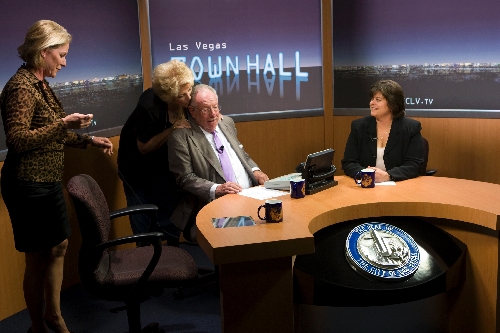 "Thank you, your honor," he said to outgoing Mayor Oscar Goodman. "It'll be a pleasure to serve with the other Mrs. Goodman."