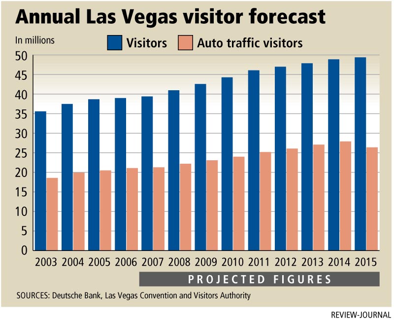 According to the report, traffic from visitors is expected to increase more than 7 percent by 2015 as the number of people visiting Las Vegas reaches more than 49 million annually.