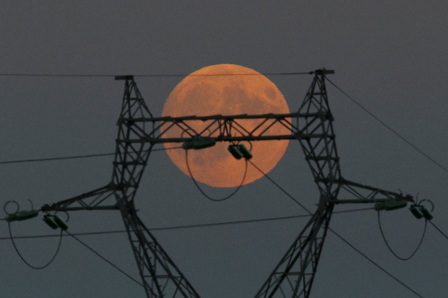 A full moon, the last of this year‘s supermoons, is seen behind an electricity pylon in Le Pallet, France, September 27, 2015. This larger-than-average full moon is seen in France on Sunday, hours before a total lunar eclipse which will occur during the early hours of Monday, when the shadow of the Earth casts a reddish glow on the moon, the result of a rare combination of an eclipse with the closest full moon of the year. (Reuters)