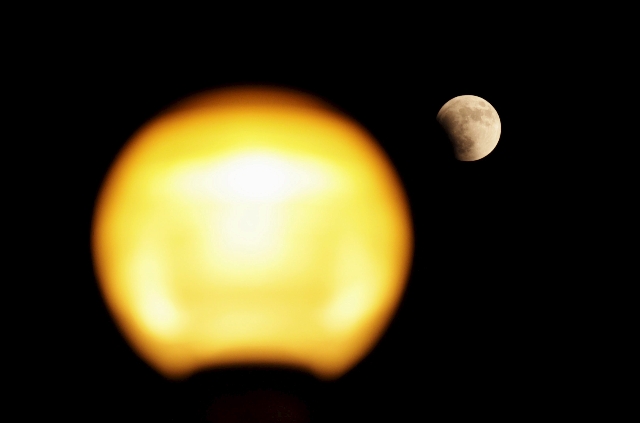 A partially eclipsed supermoon, the last of this year‘s supermoons, rises over Las Vegas, Nevada, September 27, 2015. Sky-watchers around the world were treated when the shadow of Earth casts a reddish glow on the moon, the result of rare combination of an eclipse with the closest full moon of the year. (Reuters)