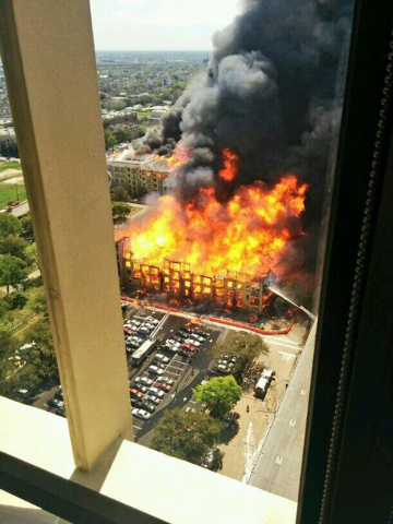 Reissig said he went to the roof after he heard a small fire had broken out there. He planned to douse the flames with an extinguisher, but strong winds quickly spread them.