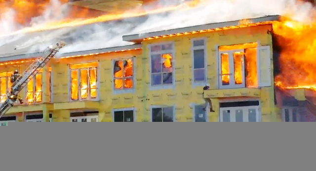 HOUSTON (AP) — A Houston construction worker whose harrowing escape from a burning building was caught on video said Wednesday that he knew he had to act quickly when he realized he was trapped on a fifth-floor balcony.