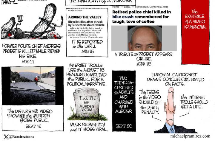 Review-Journal editorial cartoonist Michael Ramirez is a two-time winner of the Pulitzer Prize and a three-time winner of the Sigma Delta Chi Award.