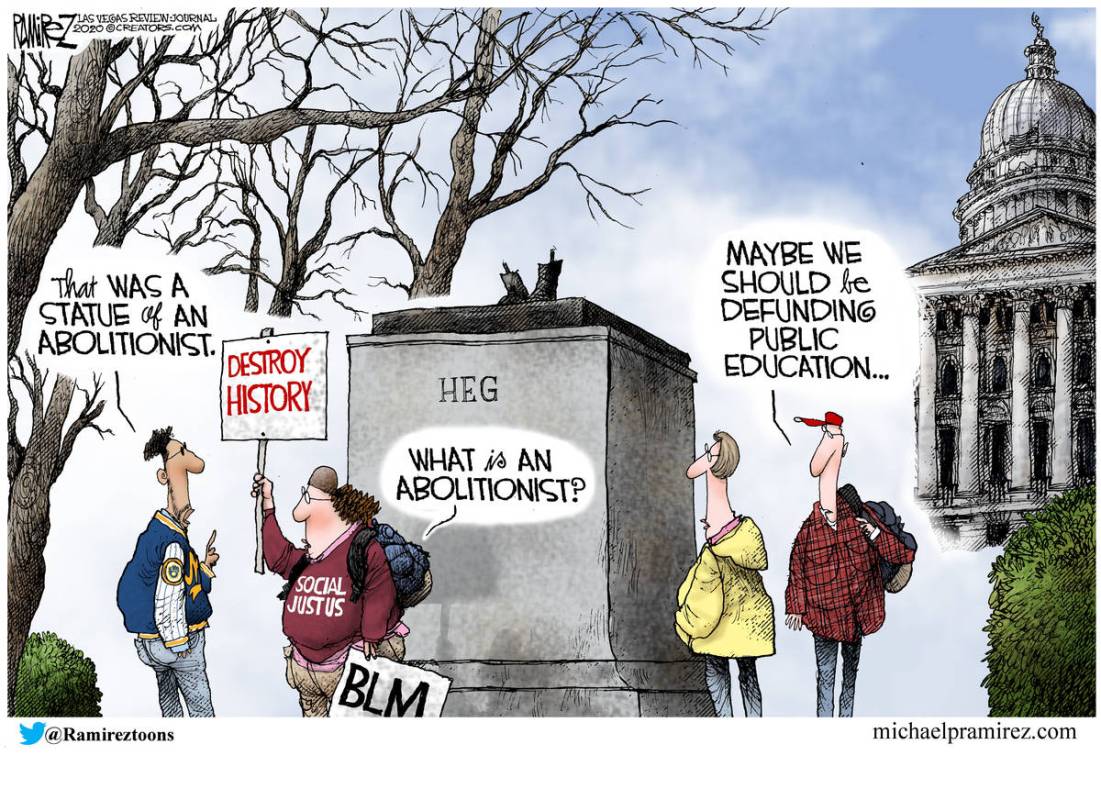 CARTOON: Down goes history By Michael Ramirez Las Vegas Review-Journal 5 years ago Protesters tear down statues of abolitionists and anti-slavery historical figures. Review-Journal editorial cartoonist Michael Ramirez is a two-time winner of the Pulitzer Prize and a three-time winner of the Sigma Delta Chi Award.