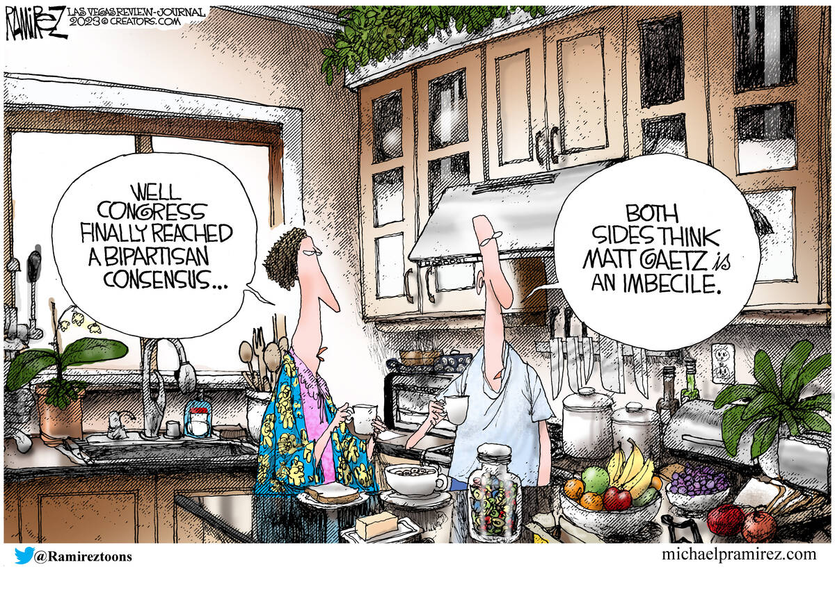 CARTOON: Matt Gaetz is a dolt By Michael Ramirez Las Vegas Review-Journal 3 years ago A bipartisan consensus forms in the House. Review-Journal editorial cartoonist Michael Ramirez is a two-time winner of the Pulitzer Prize and a three-time winner of the Sigma Delta Chi Award.