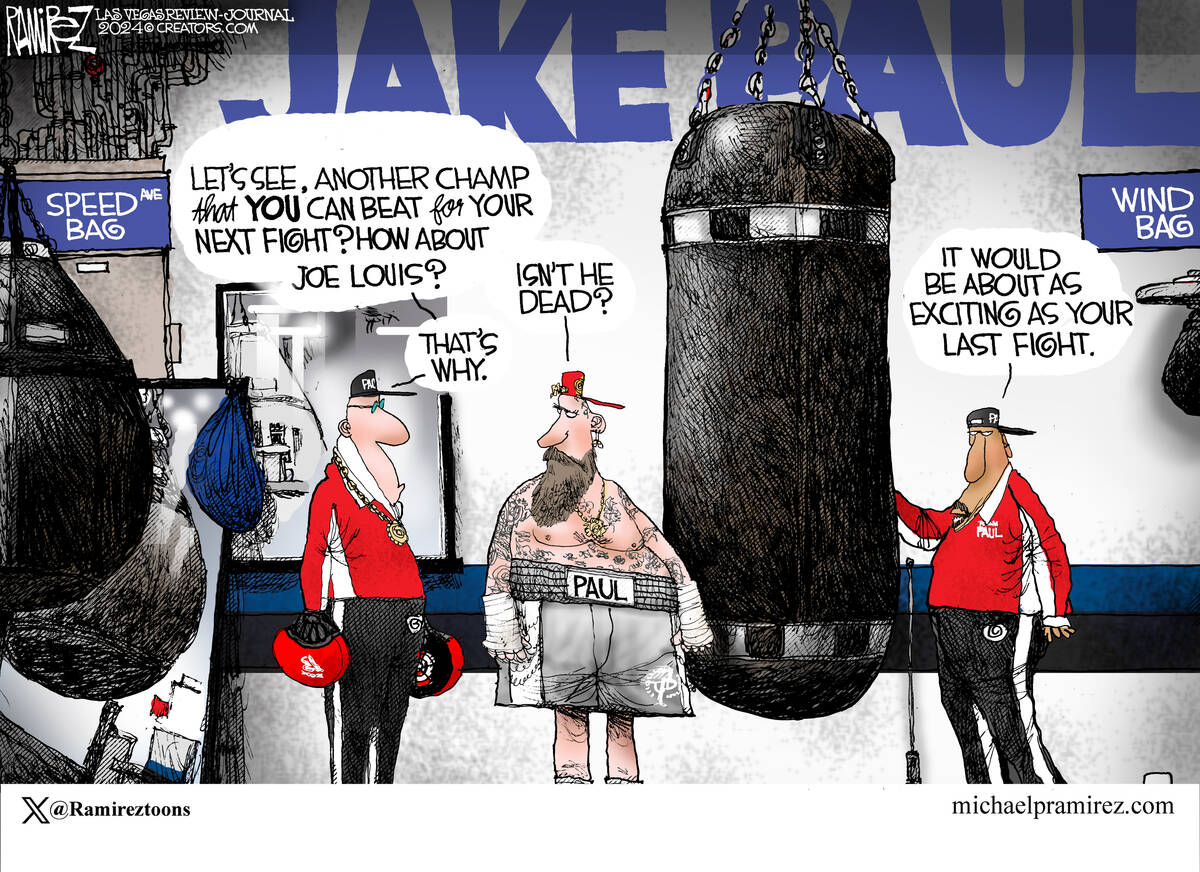 CARTOON: Netflix fiasco By Michael Ramirez Las Vegas Review-Journal 11 months ago Replacing the “x” in “boxing” with an “r.” Replacing the “x” in “boxing” with an “r.” Review-Journal editorial cartoonist Michael Ramirez is a two-time winner of the Pulitzer Prize and a four-time winner of the Sigma Delta Chi Award.