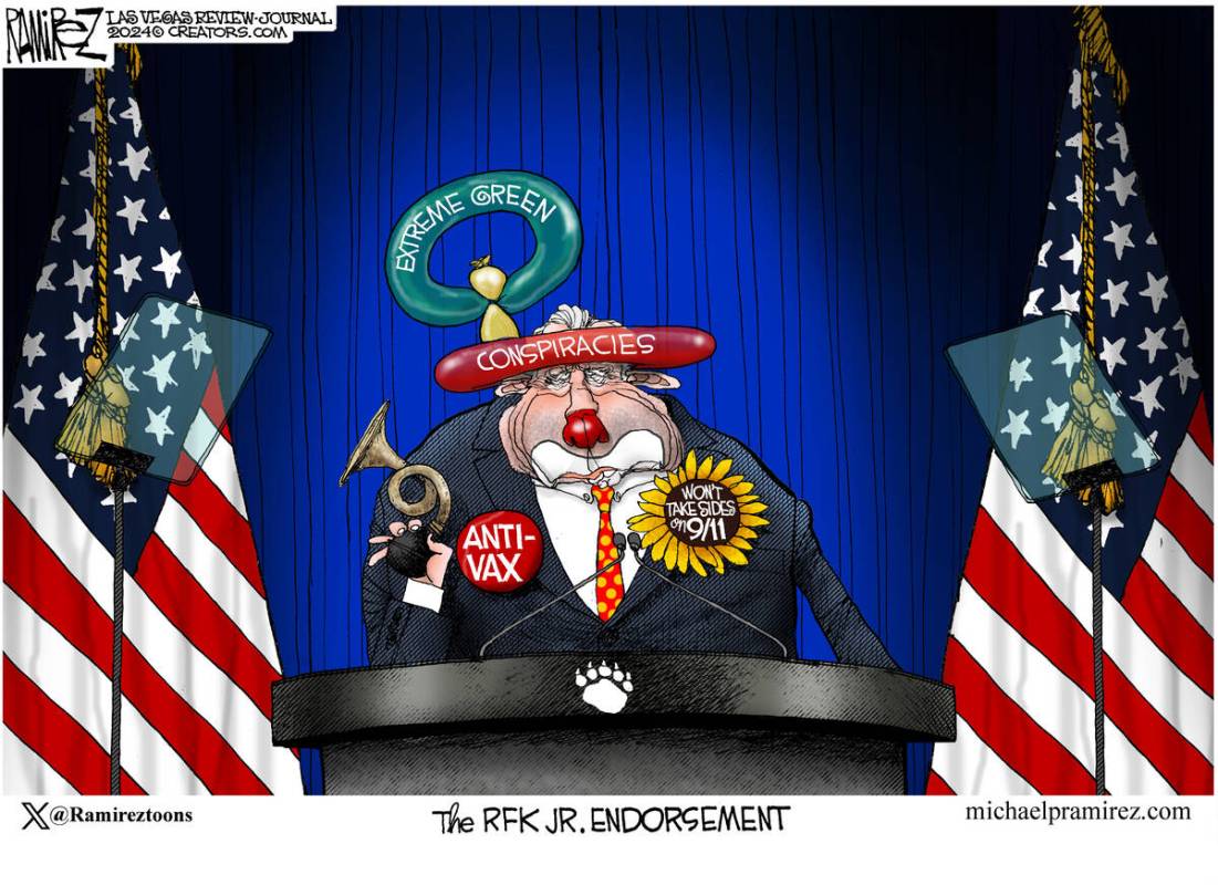 CARTOON: RFK’s move By Michael Ramirez Las Vegas Review-Journal 1 year ago Send in the clown. Review-Journal editorial cartoonist Michael Ramirez is a two-time winner of the Pulitzer Prize and a four-time winner of the Sigma Delta Chi Award.