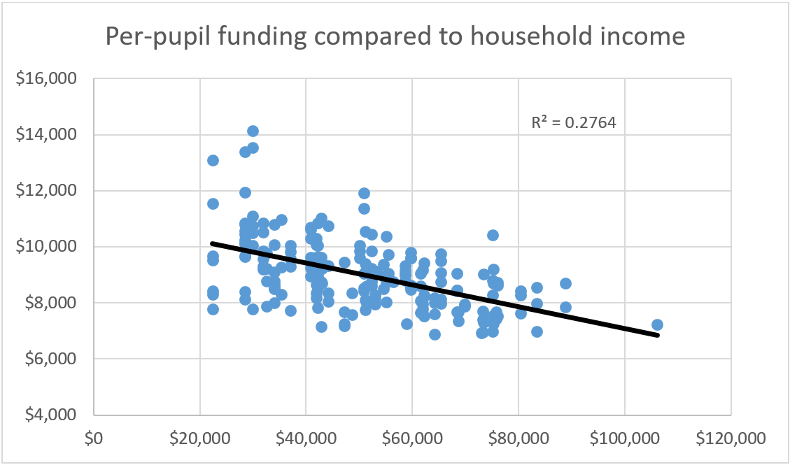Put simply: As parents earn more and pay more taxes, the schools their children attend get less.