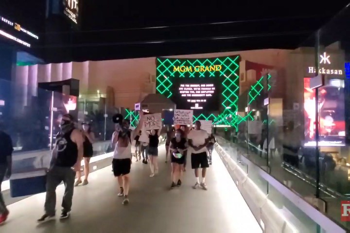Two officers were injured and 30-40 demonstrators were arrested during the Strip protest, the Metropolitan Police Department said during a briefing Friday night.