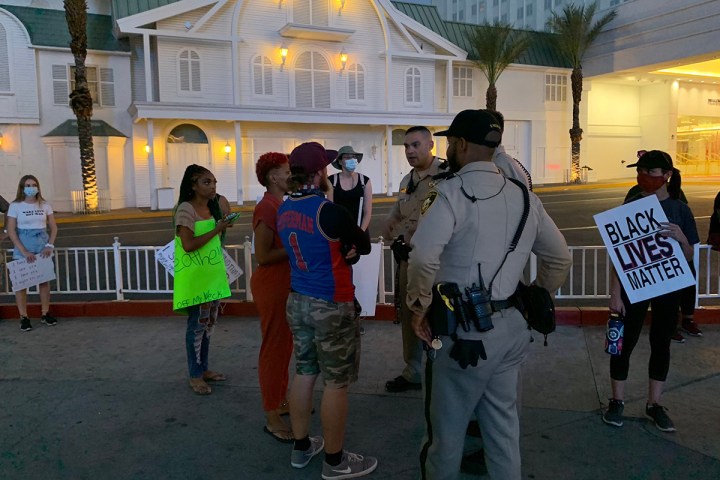 The sixth night of Black Lives Matter protests in Las Vegas Wednesday evening involved a group of about 300 people downtown.