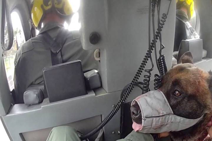 Las Vegas police have released video that shows the dramatic rescue after one of the agency’s K-9 officers was stabbed multiple times.