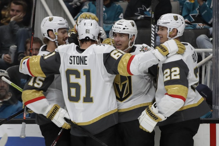 The 20-year-old center one-timed a pass from left wing Max Pacioretty past San Jose Sharks goaltender Martin Jones 2:12 into the second period in the Knights’ 4-1 victory.
