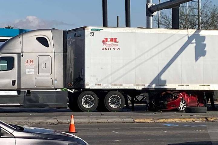 A speeding driver who apparently ran a red light and crashed into a semitrailer was killed Friday morning in North Las Vegas, according to police.