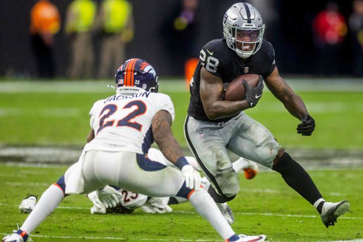 One month into the season, Raiders running back Josh Jacobs is showing he can carry a heavy workload. He ran for 144 yards on 28 carries in Sunday’s win over Denver.