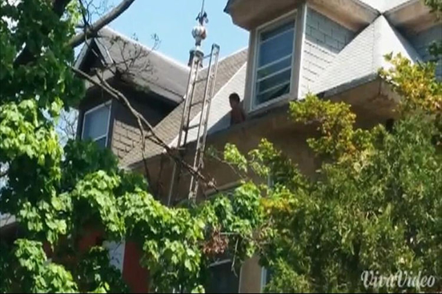 After authorities were called to a three-story Philadelphia home, they discovered a toddler on the roof and a 1-year-old climbing out of a window.