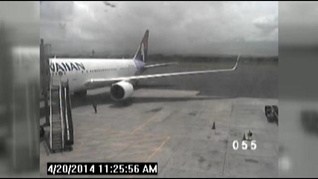 The security footage looks unassuming at first: a Hawaiian Airlines jet parked at a gate at the Maui airport under overcast skies, and workers going through their regular routine. Then, the 15-year-old’s legs dangle briefly from the plane’s belly and he drops to the concrete.