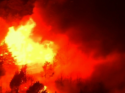 Firefighters facing another hot and windy forecast worked Monday to battle a large wildfire in central Oklahoma that destroyed at least six homes and left one person dead after a controlled burn spread out of control.