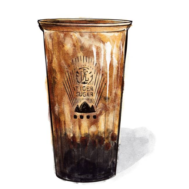 Milky black tea served with chewy boba tapioca balls. Tiger Sugar, $5.50, en.tigersugar.com