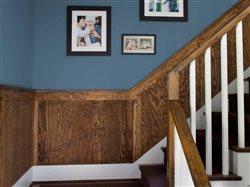 1. Add wood to your walls. Whether for a dining room, entryway or bedroom, adding wainscoting or a wood feature wall can dramatically change the look of the room by adding dimension, often making smaller spaces feel a bit bigger. Different types of interior wood finishes reflect different styles. For example, leaving wood paneling unfinished can create the ambiance of a coastal beach house, while a transparent stain is a more polished way to let the natural beauty of the wood grain shine through. The contrast of wood finishes with an adjacent wall in striking paint colors can modernize a room in no time flat.