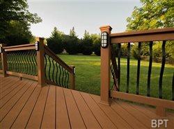 While railings are an important safety feature, they can also double as a decorative accent that takes your deck to a whole new level. You can finish out your deck with color-matched composite railing components and accessories for a seamless look, or contrast colors to create visual interest. If preserving views is important, consider using tempered glass panels, horizontal cables or shaped metal instead of traditional balusters.
