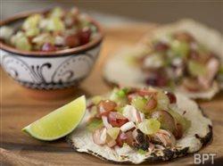 Grilled Salmon Tacos with Grape Pico de Gallo